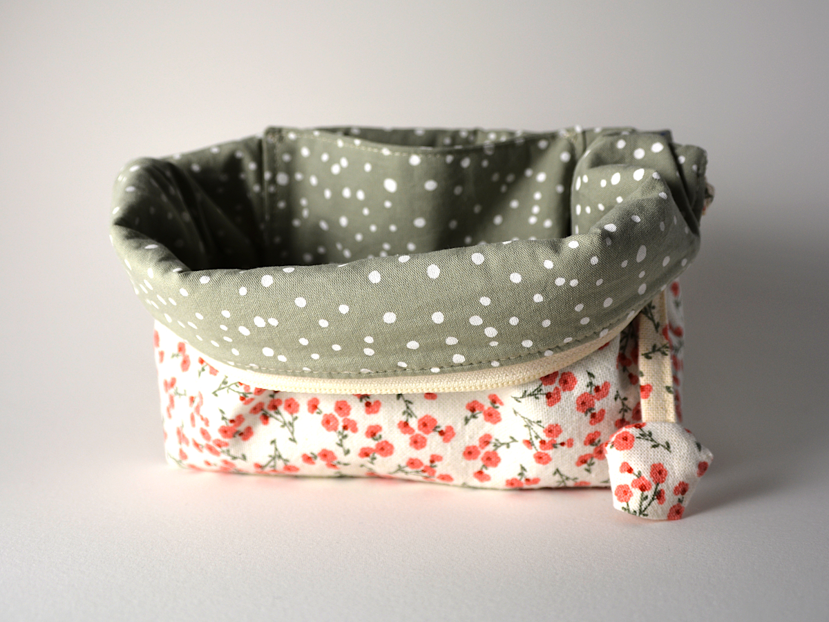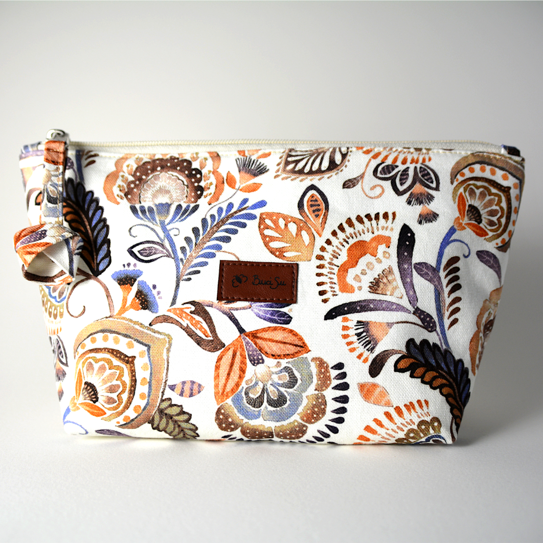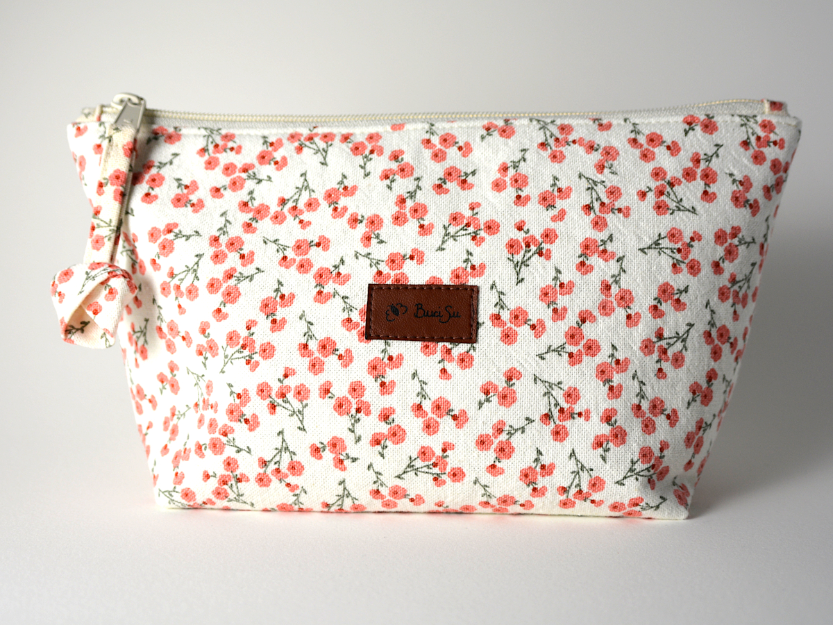 This hand-sewn toiletry bag is the perfect companion for storing your cosmetics, toiletries, or other everyday essentials. Its upright shape offers great visibility and makes the most of the space, while the fold-over top allows it to stand like a little box — practical and charming at the same time.